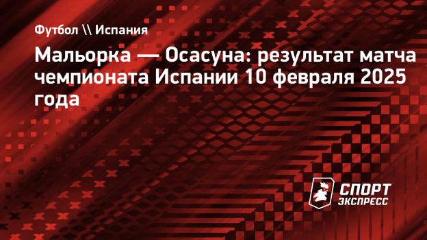 «Осасуна» в матче 23-го тура чемпионата Испании на выезде сыграла вничью с «Мальоркой» со счетом 1:1.