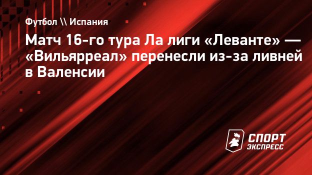 Матч 16-го тура чемпионата Испании-2025/26 «Леванте» — «Вильярреал» перенесен из-за неблагоприятных погодных условий.