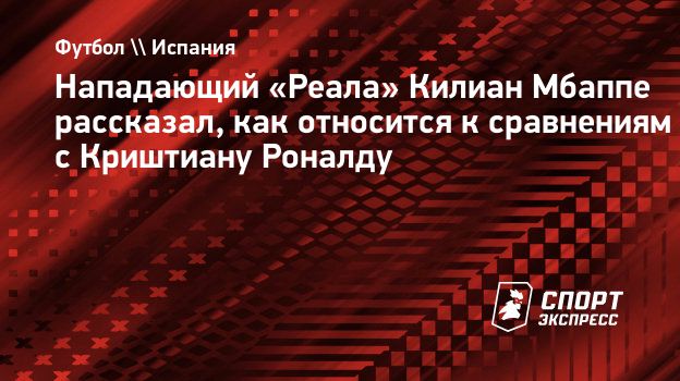 Нападающий «Реала» Килиан Мбаппе отметил, что воспринимает сравнения с экс-футболистом «сливочных» Криштиану Роналду как повод для гордости.