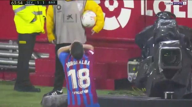 Защитник хозяев в стычке у боковой линии потерял контроль над собой, проявил агрессию и бросил мяч в голову Жорди Альбе. По правилам игры такие действия наказываются удалением.
