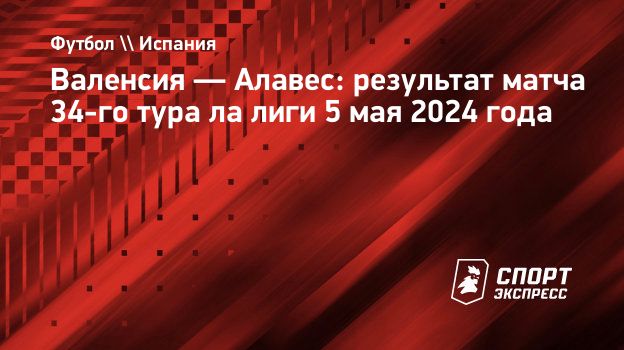 «Валенсия» дома проиграла «Алавесу» в матче 34-го тура ла лиги — 0:1.