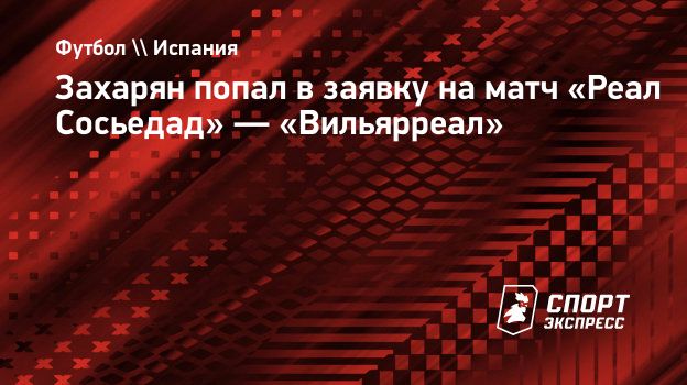 Захарян попал в заявку на матч «Реал Сосьедад» — «Вильярреал»