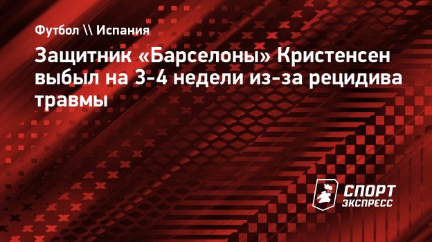 Защитник «Барселоны» Кристенсен выбыл на 3-4 недели из-за рецидива травмы