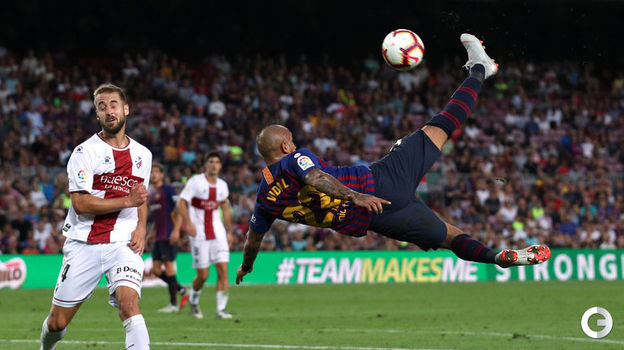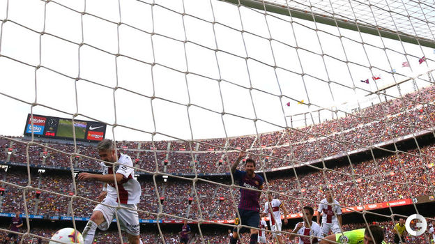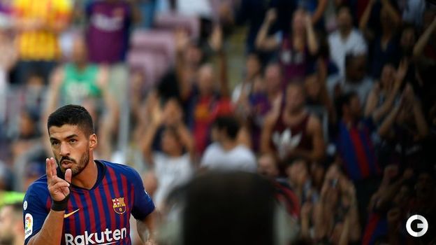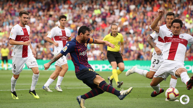 "Барселона" разгромила "Уэску" в матче 3-го тура чемпионата Испании со счетом 8:2. По дублю в составе сине-гранатовых оформили нападающие Лионель Месси и Луис Суарес.