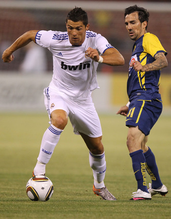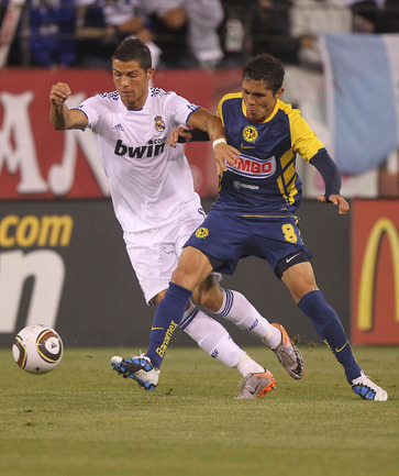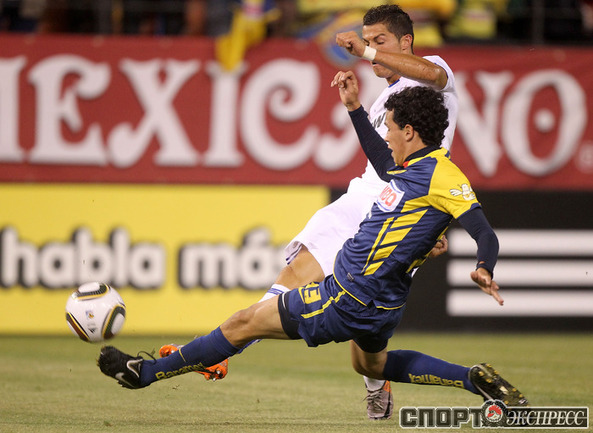 4.08.2010. Футбол. Товарищеский матч. "Америка" (Мексика) - "Реал" (Испания) - 2:3 (0:1). Голы: Каналес, 34 (1:0); Эскеда, 54 (1:1); В. Санчес, 61 (1:2); Игуаин, 64 (2:2, Криштиану Роналду, 82 (2:3). Фото AFP