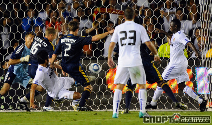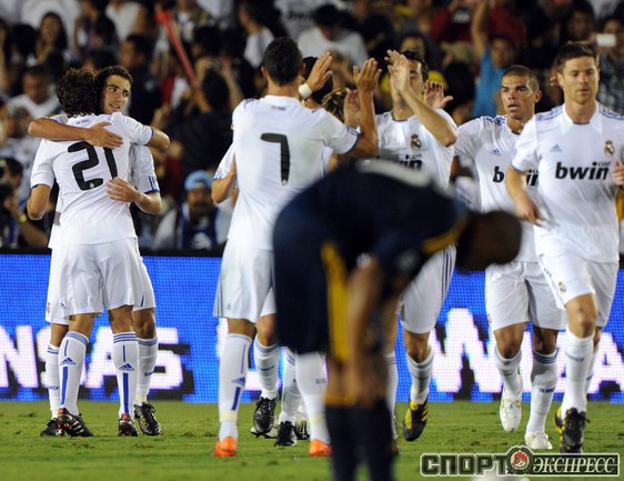 Футбол. Товарищеский матч "Лос-Анджелес Гэлакси" - "Реал" (Мадрид) - 2:3 (2:0). Во втором тайме за испанцев дважды отличился Игуаин, а победный гол провел на 71-й минуте провел Педро Леон. Из-за травмы не смог завершить матч защитник "королевского" клуба Пепе. Фото AFP