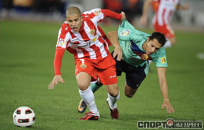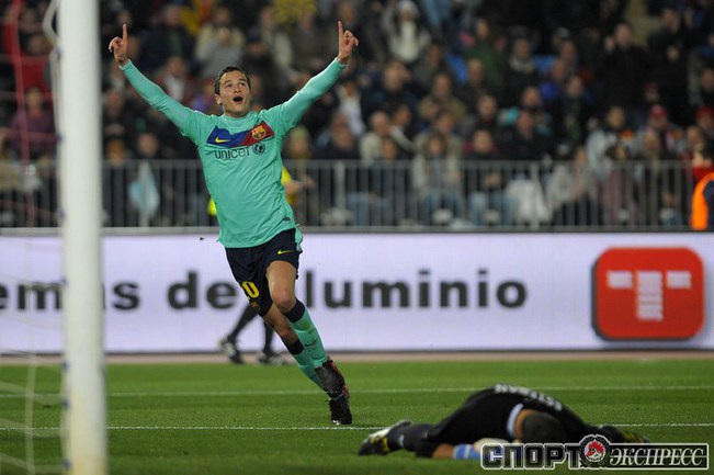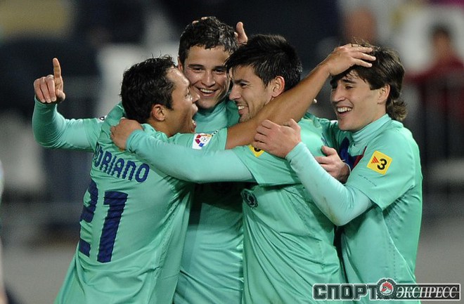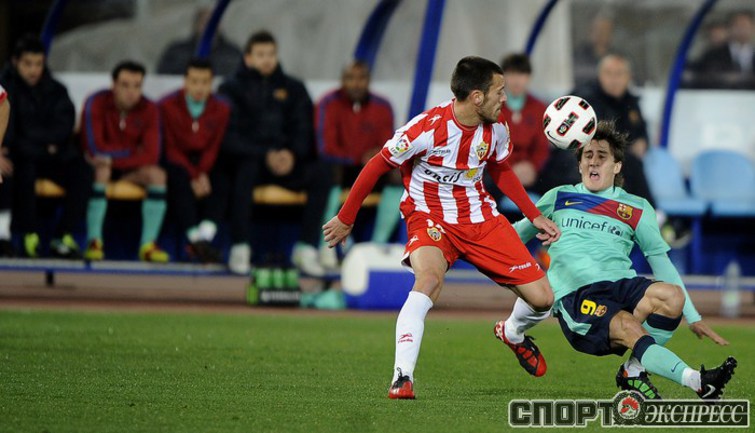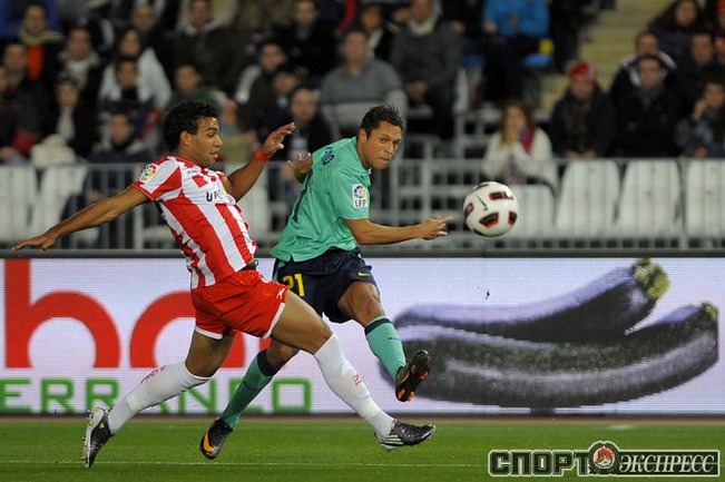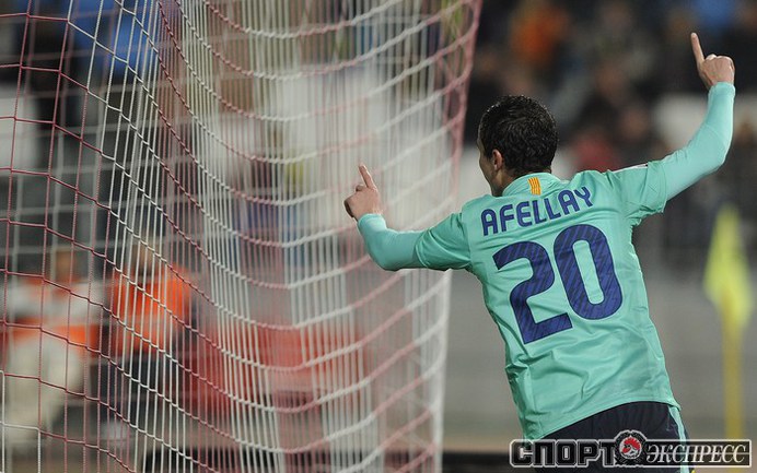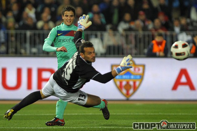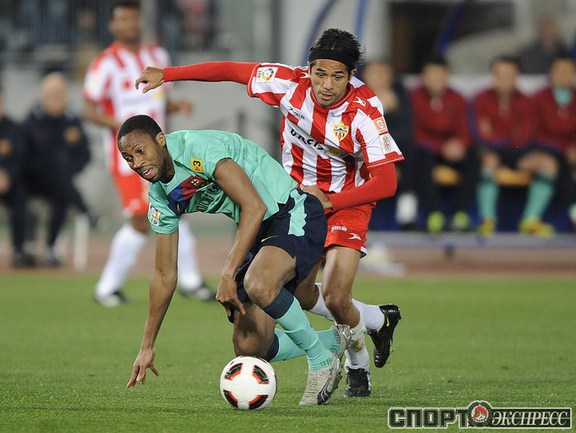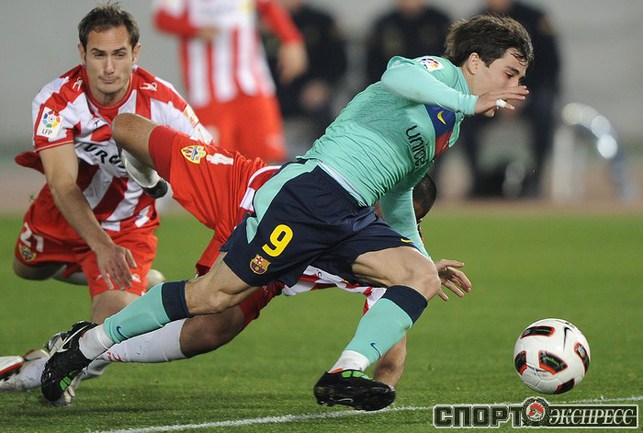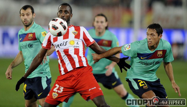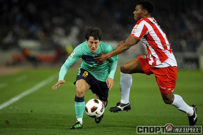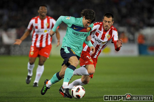 Кубок Испании. 1/2 финала. Ответный матч. "Альмерия" - "Барселона" - 0:3 (0:1). Голы: Адриану, 34 (0:1). Тиагу Алькантара, 56 (0:2). Афеллай, 66 (0:3). Первый матч – 0:5. В финале Кубка Испании "Барселона" встретится с мадридским "Реалом". Фото AFP