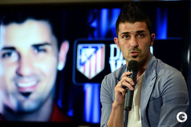 Экс-форвард "Барселоны" Давид Вилья был официально представлен в качестве игрока мадридского "Атлетико". Фото AFP