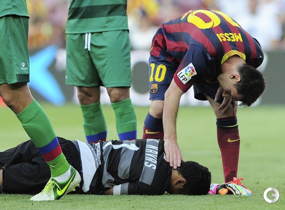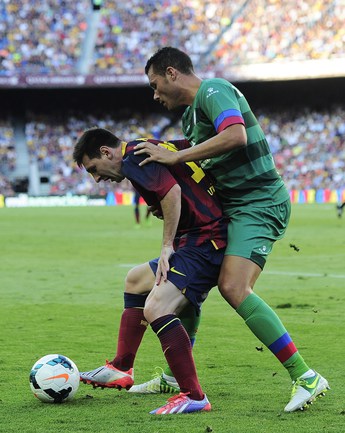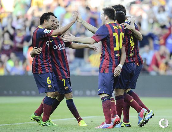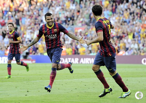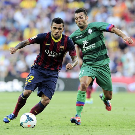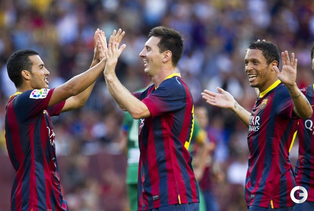 Чемпионат Испании. Примера. 1-й тур. "Барселона" - "Леванте" - 7:0 (6:0). Голы: Санчес, 3 (1:0). Месси, 12 (2:0). Дани Алвес, 24 (3:0). Педро, 26 (4:0). Месси, 42, с пенальти (5:0). Хави, 45 (6:0). Педро, 73 (7:0). В 1-м туре чемпионата Испании "Барселона" разгромила "Леванте" со счетом 7:0. Лидер атак каталонцев Лионель Месси отметился дублем, в то время как дорогостоящий новичок Неймар, выйдя на поле на 64-й минуте, отличиться не смог. Фото AFP