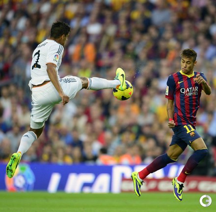Футбол. Чемпионат Испании.10-й тур. "Барселона" – "Реал" – 2:1 (1:0). Голы: Неймар, 19 (1:0). Санчес, 78 (2:0). Хесе, 90+1 (2:1)."Барселона" в домашнем матче 10-го тура чемпионата Испании победила "Реал" со счетом 2:1. Счет в игре на 19-й минуты открыл форвард каталонцев Неймар, для которого это первое в карьере класико. На 78-й минуте преимущество каталонцев удвоил Алексис Санчес. Уже в добавленное время нападающий "Королевского клуба" Хесе отквитал один мяч. Фото AFP