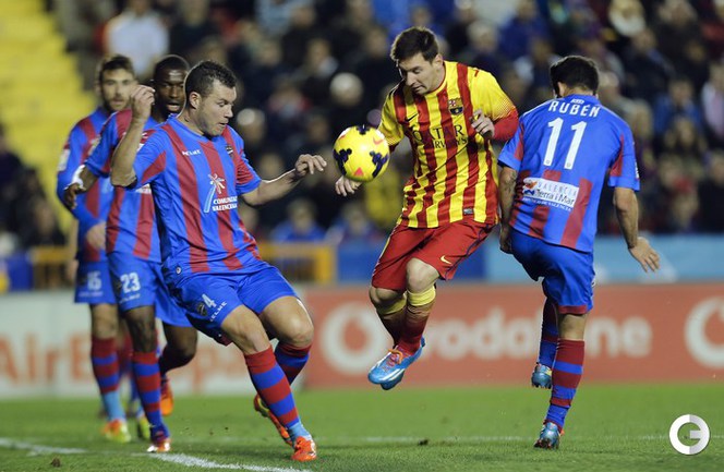 Чемпионат Испании. Примера. 20-й тур. "Леванте" – "Барселона" – 1:1 (1:1). Голы: Винтра, 10 (1:0). Пике, 19 (1:1). Фото AFP, REUTERS