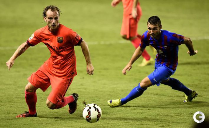 Чемпионат Испании. Примера. 4-й тур. "Леванте" – "Барселона" – 0:5 (0:2). Голы: Неймар, 34 (0:1). Ракитич, 44 (0:2). Рамирес, 57 (0:3). Педро, 64 (0:4). Месси, 77 (0:5). Нереализованный пенальти: Месси, 42 (мимо). Фото AFP, REUTERS