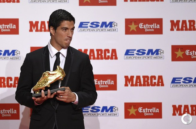 Барселона. Уругвайский нападающий Луис Суарес получил "Золотую бутсу" лучшему бомбардиру европейских чемпионатов по итогам сезона-2013/14. Фото AFP, REUTERS