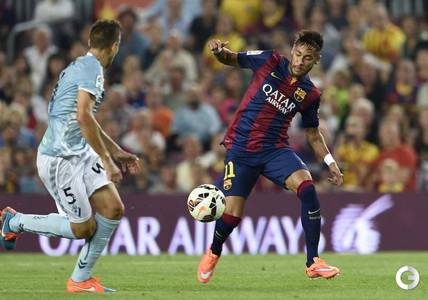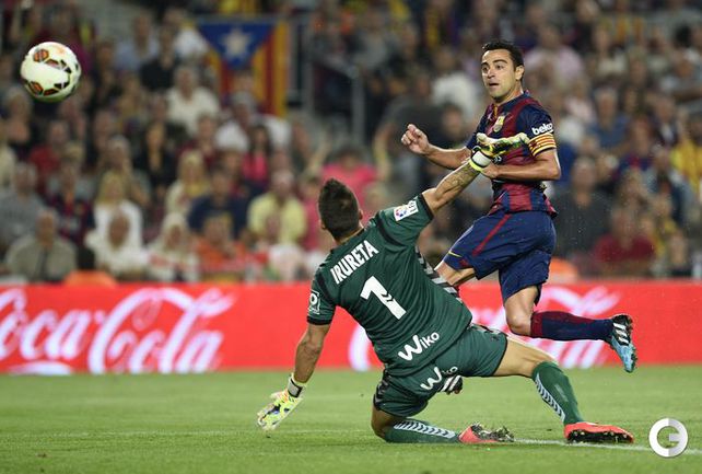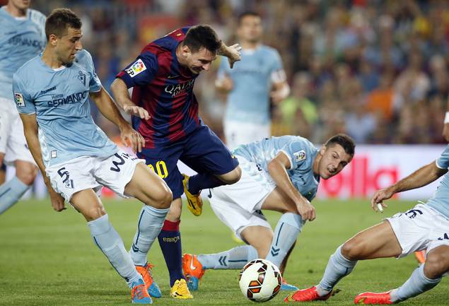 "Барселона" в матче 8-го тура примеры одержала крупную победу над "Эйбаром" – 3:0. Окончательный счет на 74-й минуте установил Лионель Месси, для которого этот мяч стал 250-м в чемпионате Испании. На данный момент форвард всего на один гол отстает от рекорда, установленного еще в 1955 году игроком "Атлетика" Тельмо Саррой. Фото AFP, REUTERS