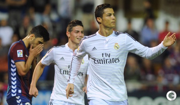 Чемпионат Испании. Примера. 12-й тур. "Эйбар" - "Реал" - 0:4. Дубль на счету нападающего Криштиану Роналду, который достиг отметки в 20 голов в нынешнем розыгрыше примеры. Еще по голу забили полузащитник Хамес Родригес и форвард Карим Бензема. Фото AFP, REUTERS