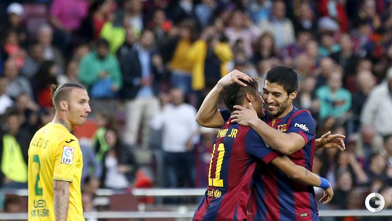 Чемпионат Испании. Примера. 34-й тур. "Барселона" – "Хетафе" – 6:0 (5:0). Голы: Месси, 9 – с пенальти (1:0). Суарес, 25 (2:0). Неймар, 28 (3:0). Хави, 30 (4:0). Суарес, 40 (5:0). Месси, 47 (6:0). Фото AFP, REUTERS