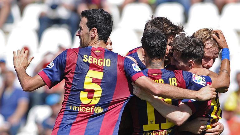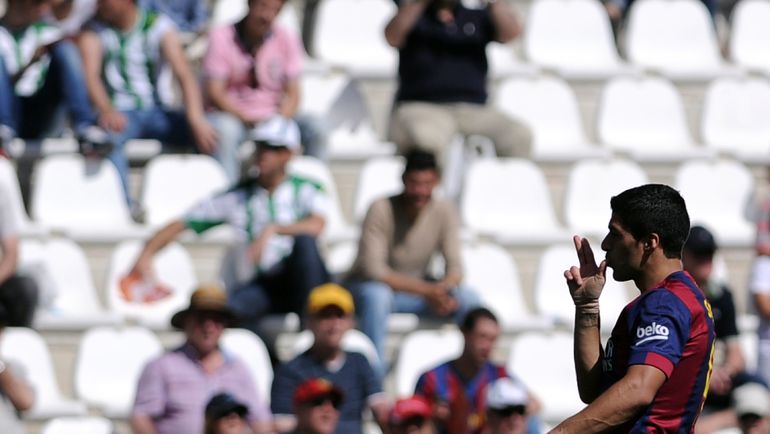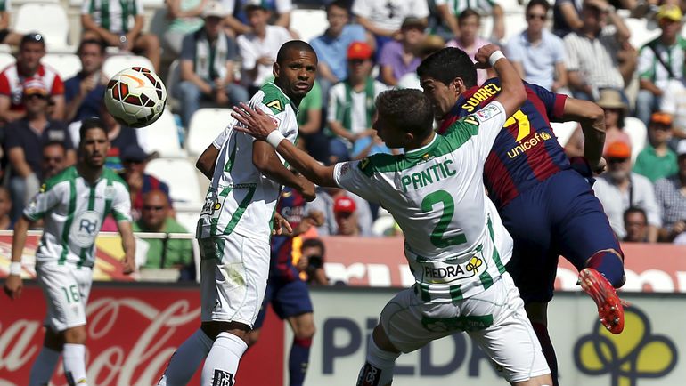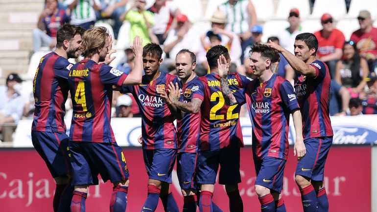 Чемпионат Испании. Примера. 35-й тур. "Кордова" – "Барселона" – 0:8 (0:2). Голы: Ракитич, 42 (0:1). Суарес, 45+2 (0:2). Месси, 46 (0:3). Суарес, 53 (0:4). Пике, 65 (0:5). Месси, 80 (0:6). Неймар, 85 – с пенальти (0:7). Суарес, 88 (0:8). Фото AFP