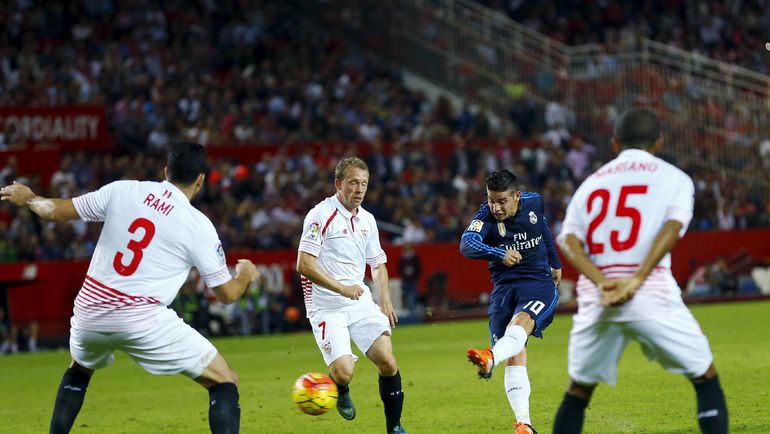 Чемпионат Испании. Примера. 11-й тур. "Севилья" – "Реал" – 3:2 (1:1). Голы: Серхио Рамос, 22 (0:1). Иммобиле, 36 (1:1). Банега, 61 (2:1). Льоренте, 74 (3:1). Родригес, 90+3 (3:2). Фото AFP, REUTERS