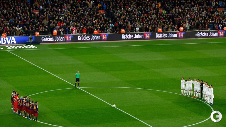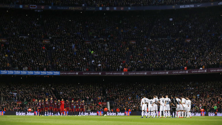 Болельщики во время матча 31-го тура чемпионата Испании между "Барселоной" и "Реалом" (1:2) почтили память легенды каталонцев, бывшего футболиста и тренера Йохана Кройфа. Перед игрой была объявлена минута молчания. Болельщики "Барсы" устроили красочный перформанс, выложив из листов синего, гранатового и золотого оттенков на трибунах "Ноу Камп" футболку с 14-м номером голландца и надпись "Спасибо, Йохан". На 14-й минуте игры зрители устроили овацию. Трехкратный обладатель "Золотого мяча" ушел из жизни 24 марта в 68 лет.