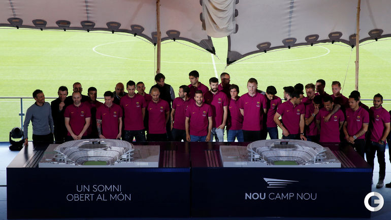 "Барселона" презентовала проект обновлённого стадиона "Камп Ноу". Реконструкция начнется в 2017 году, а открытие запланировано на сезон-2021/22. Вместимость арены будет составлять 105 тыс. зрителей.На презентации побывали игроки клуба.