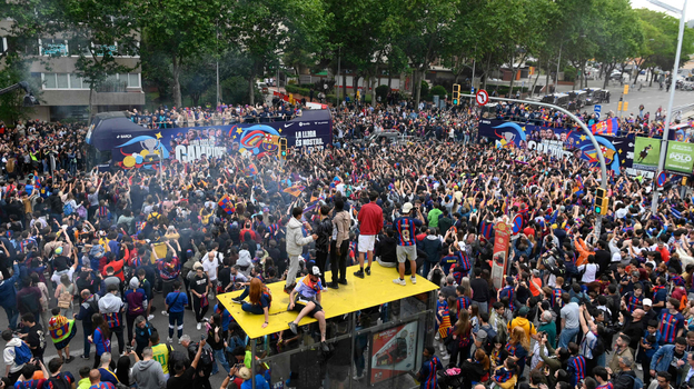 Чемпионский кортеж «Барселоны»: мужская и женская команды устроили праздник в городе