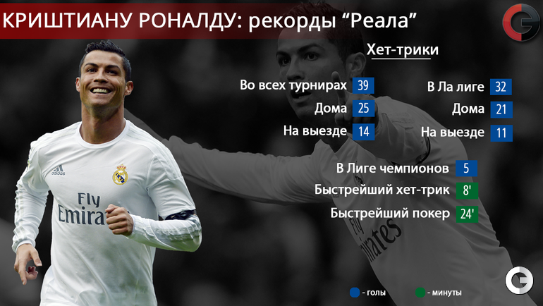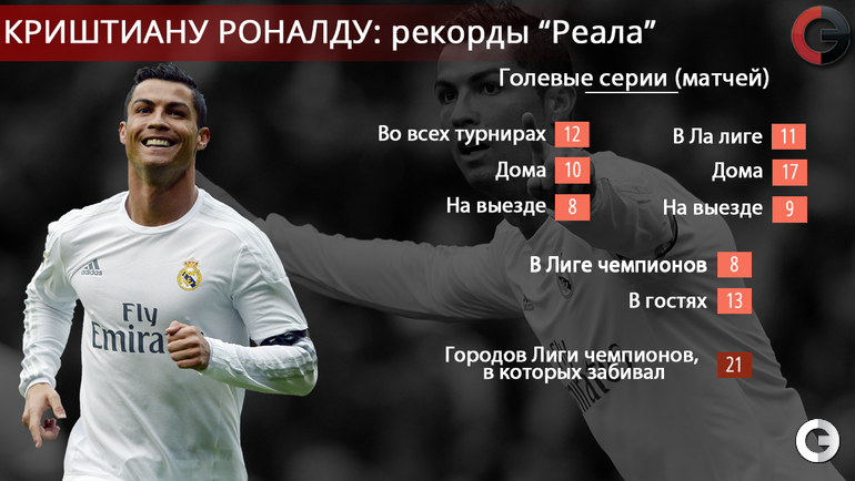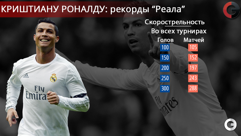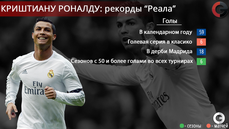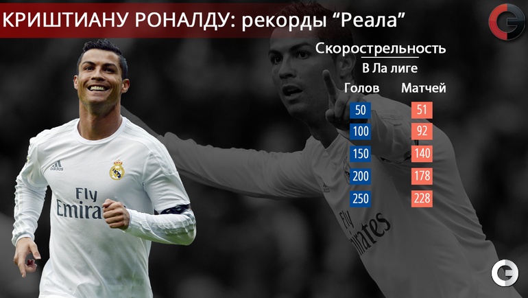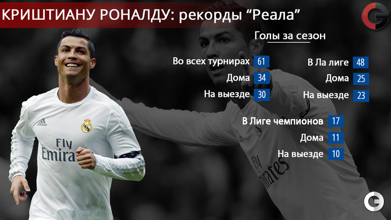 Форвард сборной Португалии Криштиану Роналду в составе "Реала" стал автором 69 клубных статистических рекордов. Приводим ряд достижений нападающего, которые являются высшими для "Королевского клуба".