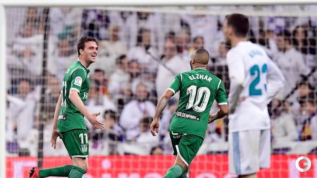 "Леганес" на выезде в ответном матче 1/4 финала Кубка Испании выиграл у "Реала" (2:1, первый матч - 0:1) и выбил мадридскую команду из турнира благодаря двум голам на чужом поле.
