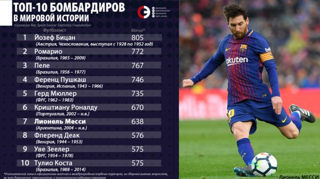 Если учитывать только официальные матчи, то у Месси 638 голов. Таким образом, он является седьмым бомбардиром в истории мирового футбола.