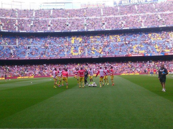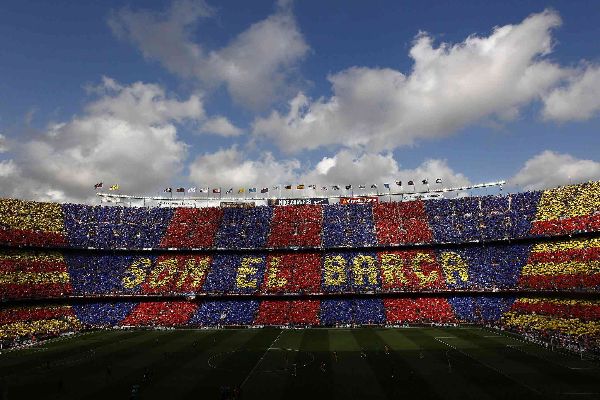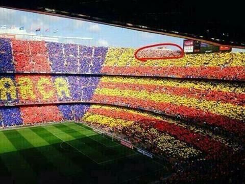 За несколько секунд до стартового свистка "Ноу Камп" окрасился в сине-гранатовые цвета каталонского клуба.