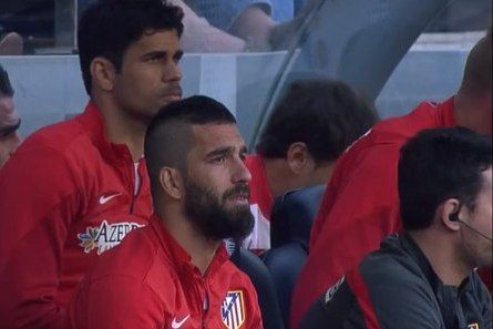 Травмированные Диегу Коста и Арда Туран со скамейки запасных наблюдают за самоотверженной игрой своих партнеров по команде.