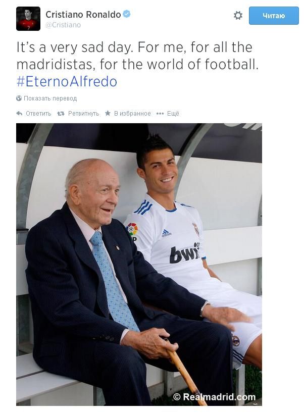 "Покойтесь с миром, Дон Альфредо, самый великий, – написал в твиттере капитан "Реала" Икер Касильяс. – Легенда мадридизма всегда с нами. Всегда буду помнить вас, маэстро".