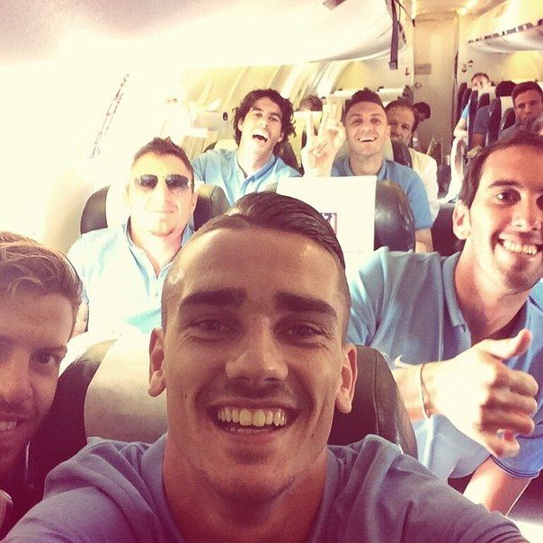 Еще один новобранец "Атлетико", француз Антуан Гризманн, перебравшийся в Мадрид из другого испанского клуба - "Реал Сосьедад", за несколько часов до последнего товарищеского поединка против "Сампдории" (2:0) сделал селфи в самолете: