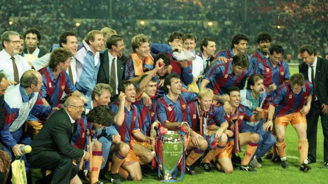 Одна из лучших команд в истории "Барселоны" - плод тренерского гения Йохана КРОЙФА. В 1991—1994 годах сине-гранатовые четыре раза подряд выиграли чемпионат Испании, а в сезоне-1991/92 был, наконец, взят и главный трофей Старого Света - Кубок чемпионов. В драматичном матче на "Уэмбли" была обыграна "Сампдория", а решающий гол со штрафного на 111-й минуте матча забил голландец Роналд КУМАН (нижний ряд - пятый справа). Фото ФК "Барселона"