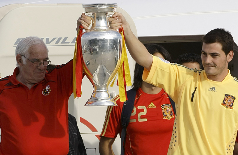 2008 год. Икер КАСИЛЬЯС и наставник сборной Испании Луис АРАГОНЕС (слева). Фото AFP