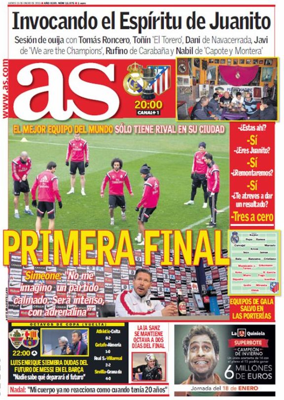 Надо сказать, что спиритический сеанс вызвал массу откликов среди любителей спорта в Испании. AS поместила анонс рассказа на обложку своего номера, а подробный репортаж дала на главной странице сайта.