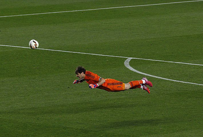 Вратарь "Реала" Икер КАСИЛЬЯС мог позволить себе и такие сэйвы за пределами штрафной.