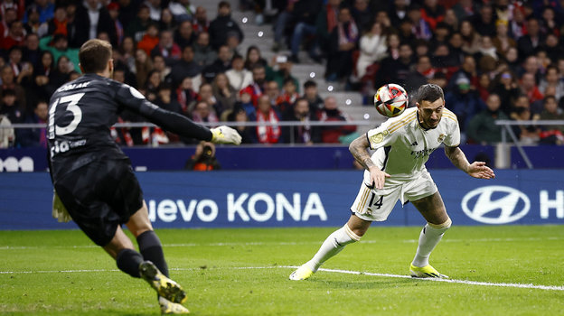Притом что сливочные создавали больше моментов, открыл счет «Атлетико». Не без доли везения, так как мяч прилетел на ногу Самуэлу Лино от головы Рюдигера, который пытался прервать заброс в штрафную.