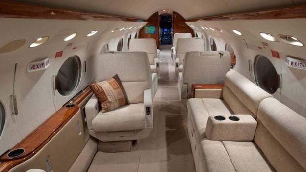 15-миллионный ковер-самолет футбольного бога - Gulfstream V, реактивный двухмоторный лайнер бизнес-класса от американской корпорации Gulfstream Aerospace. Год выпуска – 2004, длина – 30 м, крейсерская скорость – 850 км/ч. Комплектация, как принято говорить в таких случаях, базовая, – 16 кресел, которые превращаются в восемь кроватей, две кухни и два туалета, один из них с душевой кабиной.