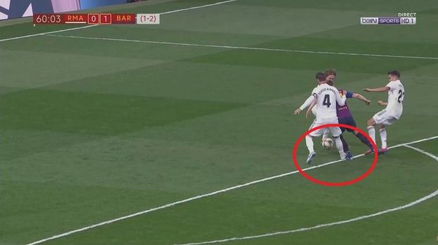 На 59-й минуте случился еще один момент. Пожалуй, в этом случае основания для назначения пенальти еще более явные. На видеозаписи четко видно, что Серхио Рамос наступил Ивану Ракитичу на левый голеностоп. Произошло это в штрафной площади мадридцев.