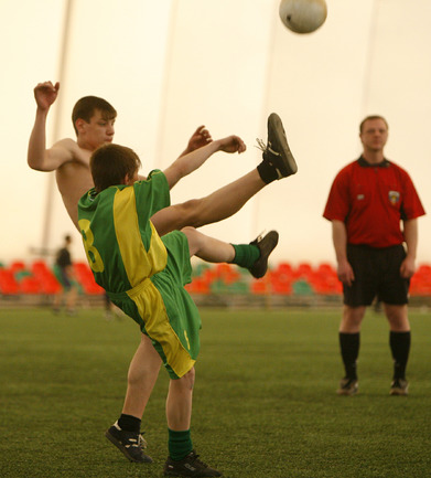 Москва. Черкизово. Манеж "Локомотив". Турнир дворовых команд. Соревнования для команд детских домов и школ-интернатов. 4-й отборочный этап Кубка "СЭ" - "Мы вместе!". Участники: "Мечта" (спецшкола №482), "Воронцы" (школа-интернат №62), "Камелот" (центр образования " 1865), "Локомотив" (школа-интернат №55), "СДД" (Салтыковский детдом), "Спартак" ((детдом №57), "Русь" (школа-интернат №80, детдом №18 и специальной (коррекционной) школы №869). Первое место досталось "СДД", которая сыграет 24 апреля в Лужниках в "Финале четырех". Фото - Алексей ИВАНОВ, "СЭ"