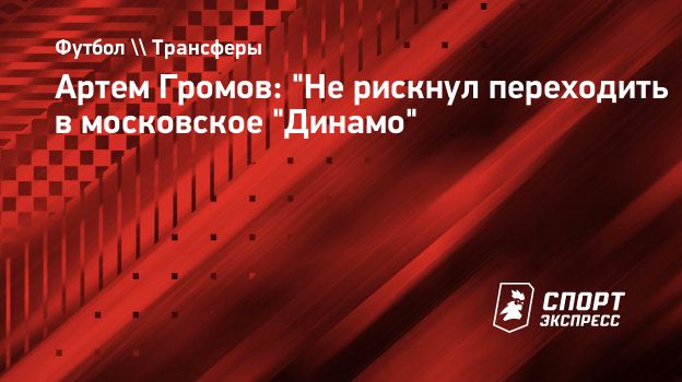 Артем Громов: "Не рискнул переходить в московское "Динамо"