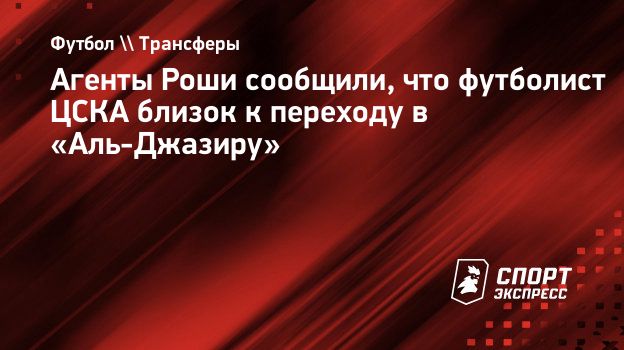 Агенты Роши сообщили, что футболист ЦСКА близок к переходу в «Аль-Джазиру»
