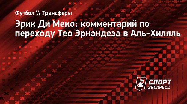 Экс-защитник сборной Франции Эрик Ди Меко раскритиковал защитника «Милана» Тео Эрнандеза за решение перейти в «Аль-Хиляль».