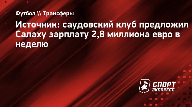 По данным источника, 33-летнему египтянину готовы платить около 2,8 миллиона евро в неделю, или около 137 миллионов евро в год.