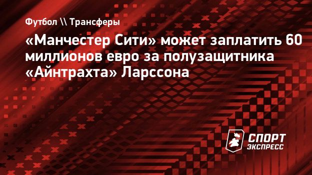 «Манчестер Сити» может заплатить 60 миллионов евро за полузащитника «Айнтрахта» Ларссона