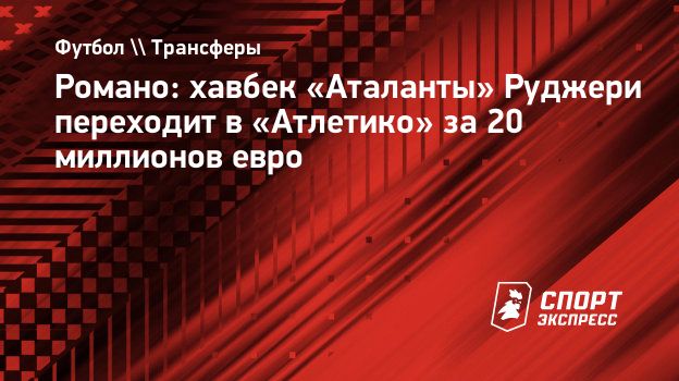В прошлом сезоне Руджери сделал 3 голевых паса в 38 матчах за бергамасков. Портал Transfermarkt оценивает его стоимость в 16 миллионов евро.