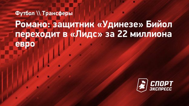 Романо: защитник «Удинезе» Бийол переходит в «Лидс» за 22 миллиона евро
