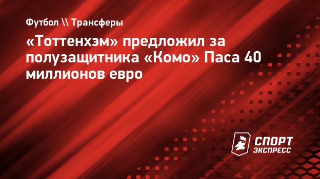«Тоттенхэм» предложил за полузащитника «Комо» Паса 40 миллионов евро