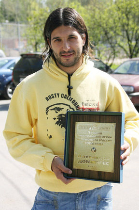 Один из лучших легионеров чемпионата России-2009 Алехандро Домингес перешел из казанского "Рубина" в испанскую "Валенсию". Фото REUTERS - с первой тренировки аргентинца в новом клубе и фото "СЭ" - с матчей российской премьер-лиги, в которой Домингес отыграл шесть лет.