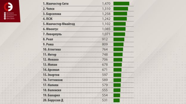 Рейтинг самых расточительных клубов возглавляет "Манчестер Сити", который потратил 1,47 миллиарда евро на трансферы с 2010 по 2018 год. Второе место занимает "Челси" – 1,31 миллиарда, третье у "Барселоны" – 1,25 миллиарда.